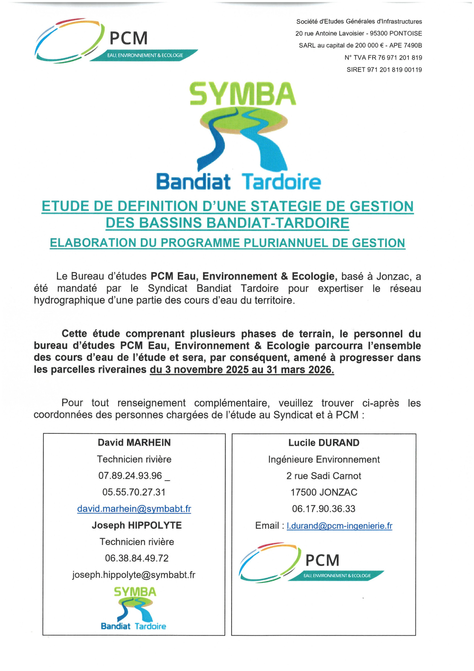 Etude des gestion des cours d'eau des bassins Bandiat-Tardoire